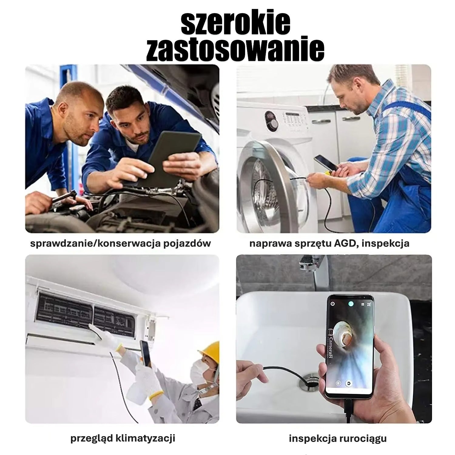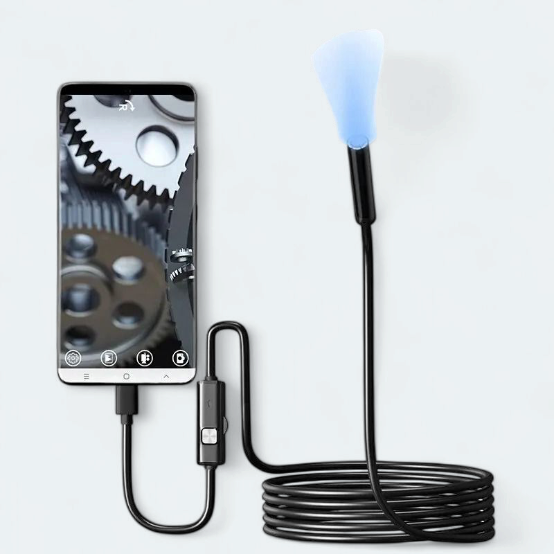 ScopeFlex™ to mini kamera endoskopowa, którą podłączasz bezpośrednio do telefonu z Androidem (z obsługą OTG) lub komputera. Wystarczy zainstalować darmową aplikację, aby od razu oglądać obraz na ekranie w czasie rzeczywistym. Dzięki wodoodpornej konstrukcji i wbudowanym diodom LED z regulacją jasności, kamera sprawdzi się w trudno dostępnych miejscach – rurach, samochodzie, sprzęcie elektronicznym czy domowych naprawach.