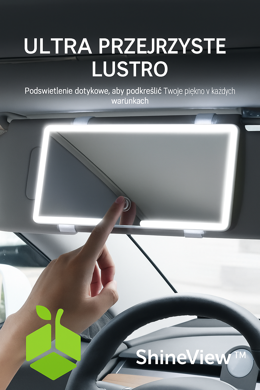 ShineView™ to inteligentne lusterko LED montowane na osłonie przeciwsłonecznej w samochodzie.